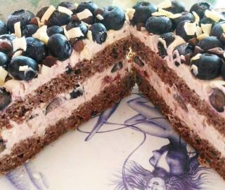 .Mix the cream and jam . Mounting cut the cake into 2 pieces . Spread half of the cream on a portion of the cake add some blueberries .cover of the second part of the cake .make the rest of cream and blueberries . Optional I add some coconut chips and chocolate chips I hope this cake will please you as much as we Have a good day 😘