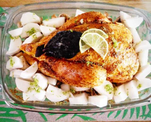 We all have a roast or braised chicken recipe but I wanted to take you on the islands with this recipe.
