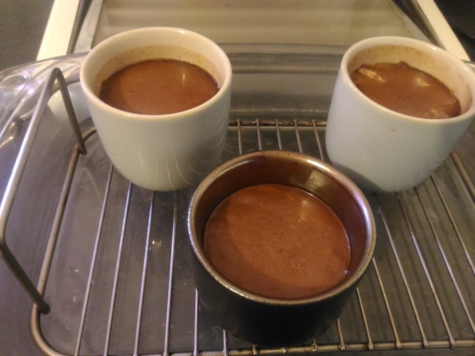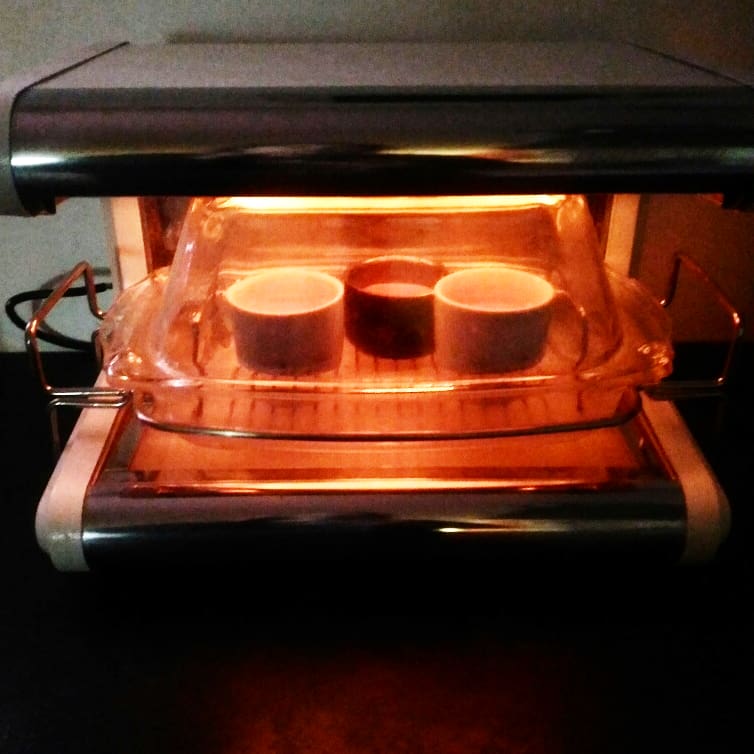 Déposer les pots de crème dans un plat rempli à moitie d’eau
