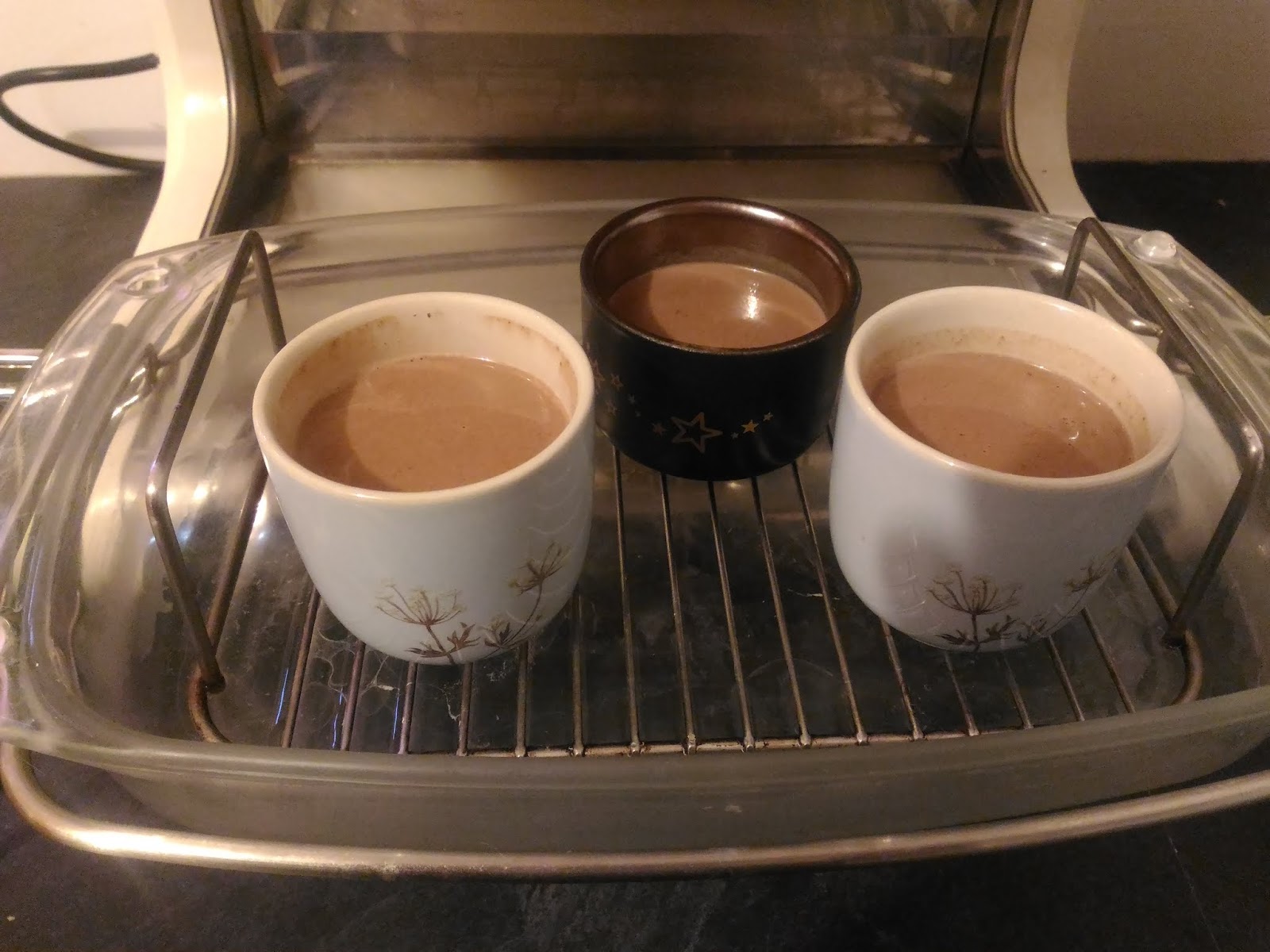 Déposer les pots de crème dans la cocotte grille position basse , et verser 60 ml d’eau au fond