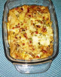 . Mettre du poulet et ajouter le poivron couper en dès et les tomates en quartier (en garder une poignée pour le dessus)