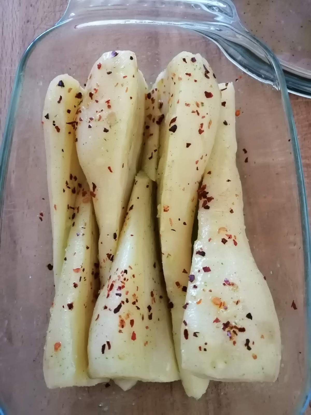 . Éplucher et couper en 2 dans le sens de la longueur les panais
