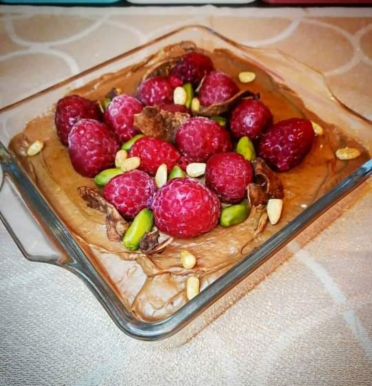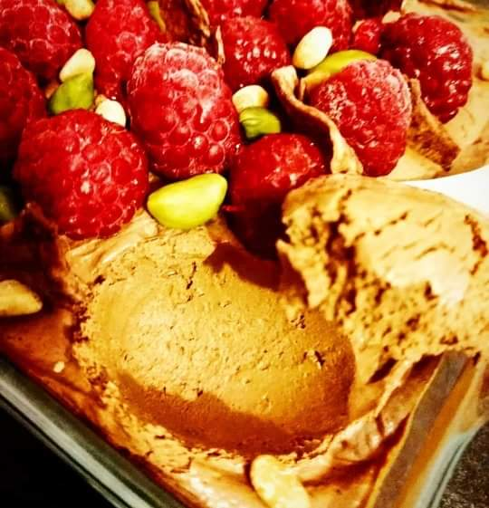 Avant de servir ajouter quelques framboises et pistaches.