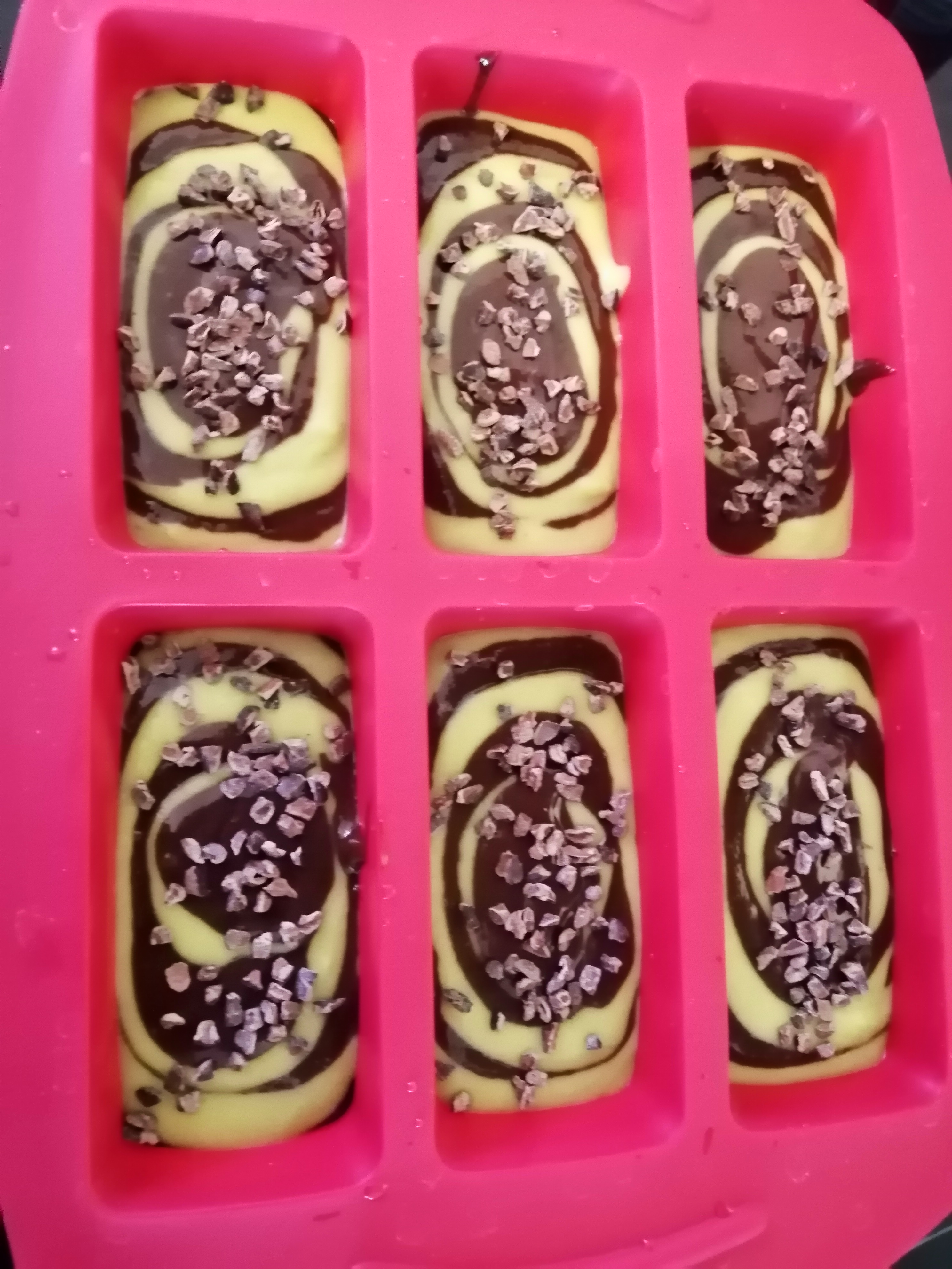 - On finit par saupoudre sur chaque marbre un peu de Grué de cacao