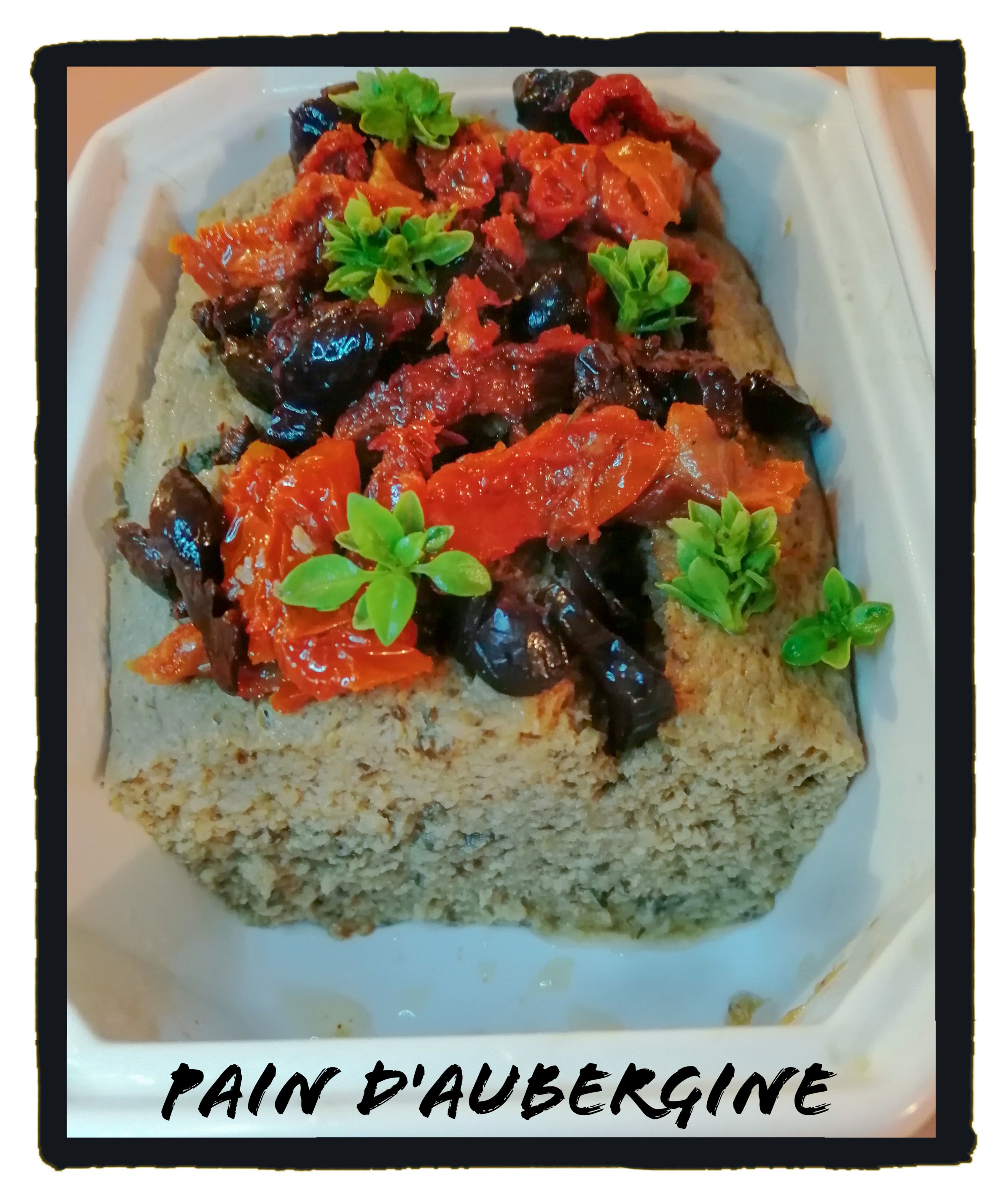 Vous pouvez agrémenté votre pain d’aubergine avec une sauce tomate maison ou comme je les fais , vous ajouter au moment de servir des tomates confites à l huile, olive noire et basilic frais.