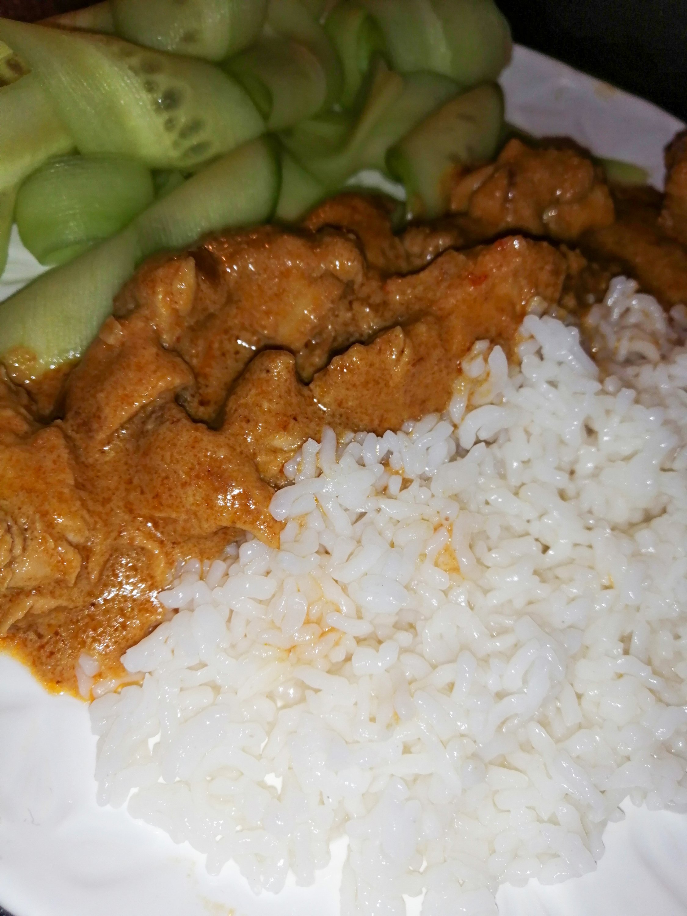 . Pendant ce temps rincer votre riz et dresser dans votre assiette avec quelques lamelles de concombre (facultatif)