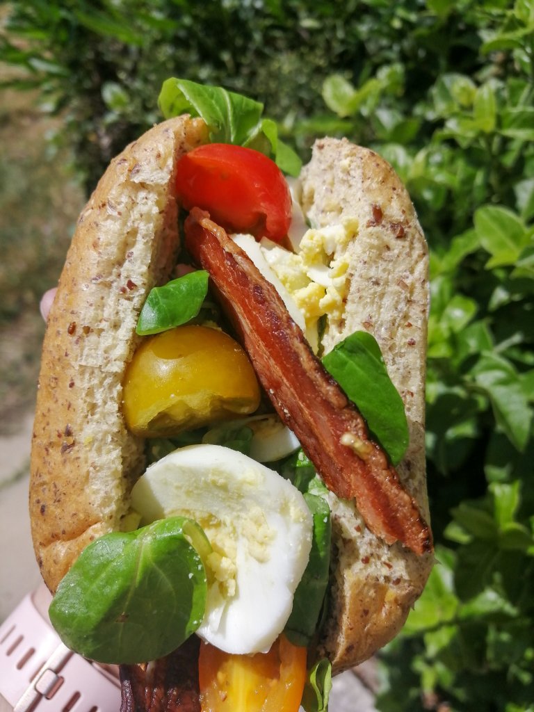Cette semaine j’ai marché à l’envie mais surtout à la facilité 😜. Du coup j’ai sorti du congélateur un pain rond de chez @seriouslylowcarb qui se porte très bien une fois décongelé il est comme reçu frais. Trop bon 😋