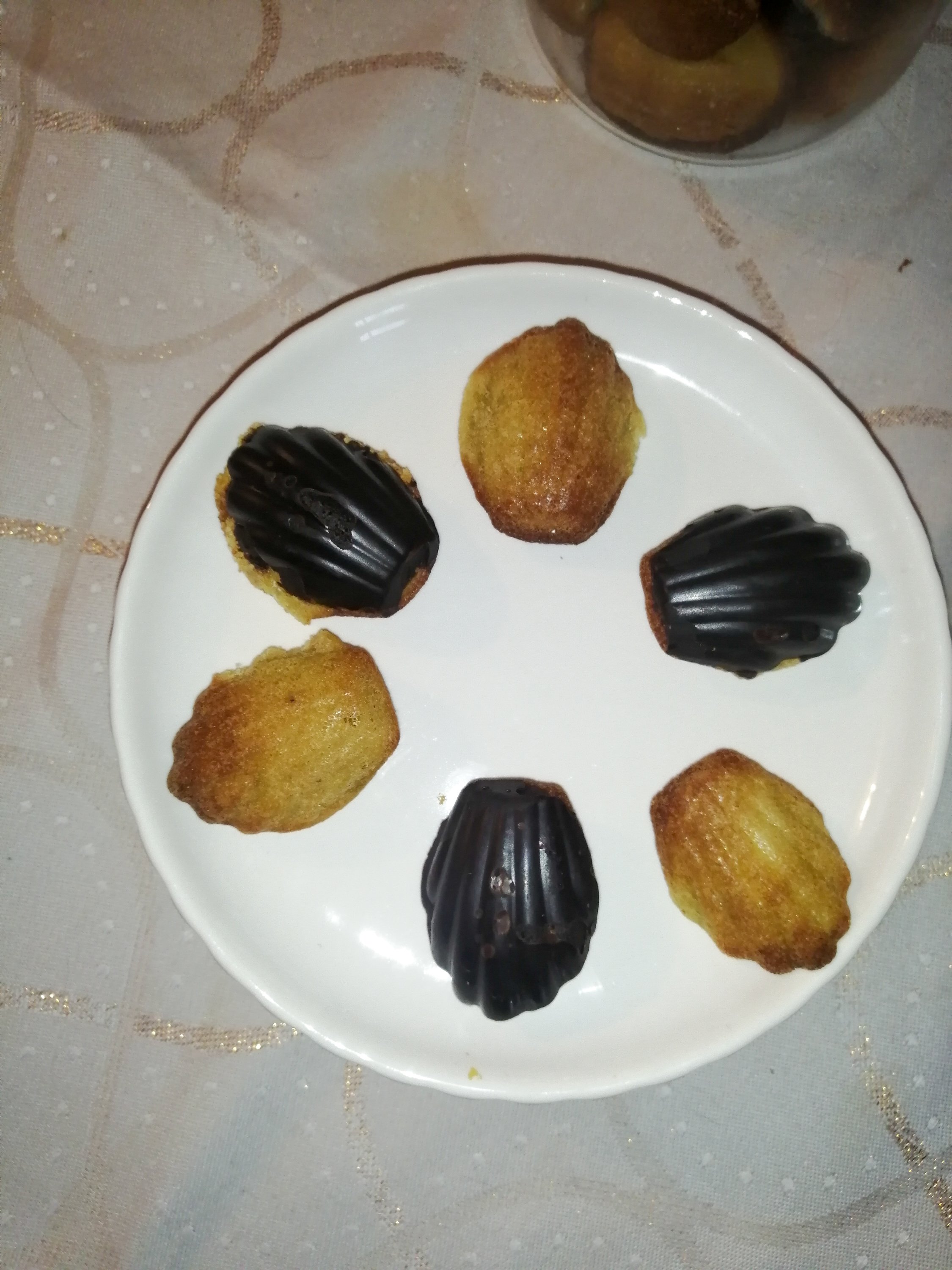 Mon petit pot en verre était vide depuis un petit moment et j’aime toujours avoir de petites gourmandises à grignoter avec mon café. Souvent un carré de chocolat mais la j’avais une envie de madeleine. Du coup j’ai dégainer mon moule à mini madeleine et voici ma recette. Vous pourrez faire 20 mini madeleine nature et 20 mini madeleine en coque de chocolat.